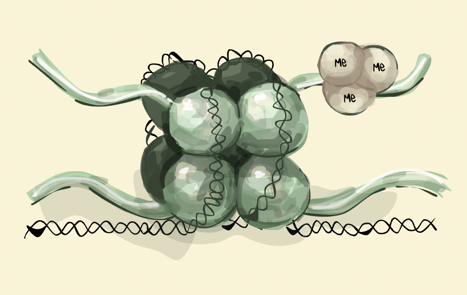 DNA wrapped around histones that can change DNA expression by covelant modifications